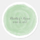 Stickers de mariage Watercolor tendance et élégant avec un cercle d'aquarelle brossé look arrière - plan vert. Ces autocollants élégants et modernes sont faciles à customiser avec vos détails mariages. Pour plus d'options de personnalisation, cliquez sur le bouton Customiser.