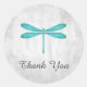 Élégant et simple Mariage merci autocollant avec une libellule turquoise contre un arrière - plan gris grunge. Ce design est un choix unique pour un mariage moderne. Facile à customiser avec vos détails mariages. Cliquez sur "Customiser" pour trouver d'autres options de personnalisation.