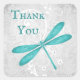 Scellez vos cartes de remerciement avec cet élégant mariage de libellules Turquoises. Le design de l'autocollant présente une libellule vibrante contre une élégante vigne florale et un arrière - plan gris damassé. Autre papeterie mariage, fournitures de mariage, et faveurs de fête disponibles avec cette conception aussi.