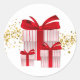Ce petit autocollant rond est présenté avec une impression festive de paquets de Noël. Customisez cet objet ou achetez tel quel.