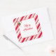Cet autocollant de Noël est montré avec une impression festive de sucre de canne rayures de fête. Grande taille affichée Personnaliser cet article ou acheter tel quel. Image stock freepik.com