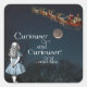 Alice du livre pour enfants Alice in Wonderland regarde vers le ciel bleu nuit à un Père Noël vintage et son traîneau plein de jouets, ainsi que sa citation du livre "Curiouser et curieux! crié Alice" et une belle lune pour faire cet autocollant de Noël magique et amusant. Les articles correspondants sont disponibles dans mon magasin Zazzle.