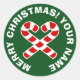 Des autocollants de Noël ronds au coeur sucre de canne. Ajoutez votre propre nom. Des autocollants de faveur personnalisés, présentent des étiquettes et des scellés d'enveloppe. CUle petit design xmas pour adultes et enfants (petits garçons et filles). Design neutre avec couleur arrière - plan personnalisable. Design de typographie mignonne pour la saison des fêtes.
