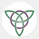 Ce produit dispose d'un Trinity Knot vert debout sur son point, entrelacé avec un anneau violet (cercle). Le noeud de la Trinité, symbole irlandais depuis longtemps, est devenu associé au christianisme celte ainsi qu'à la magie et à la wicca.