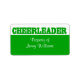 Grands étiquettes prêts à customiser avec votre propre texte. POM-POM GIRL, en vert gras, contre un arrière - plan blanc, se trouve au-dessus d'un solide champ de texte vert. Idéal pour étiqueter votre propriété pour l'école ou pendant votre séjour au camp. Plus de couleurs disponibles chez Dizzy Debbie.