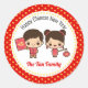 Stickers CNY mignons en rouge et or avec garçon & fille.