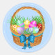 L'autocollant de Pâques est affiché avec un imprimé festif du panier de Pâques. Couleur Bleu Personnaliser ou acheter tel quel.