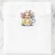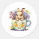 Cet autocollant rond est montré en blanc avec un mignon lapin de Pâques dans un imprimé aquarelle tasse de thé. Customisez cet objet ou achetez tel quel. Image stock