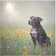 Ces gros autocollants en vinyle présentent un beau Pitbull noir et blanc contre un arrière - plan atmosphérique.