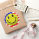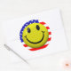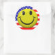 des autocollants brillants, mignons et joyeux, jaunes avec des traits noirs audacieux. Mettez un visage heureux avec ces stickers heureux et brillants ! Donnez-les à vos amis, rappelez-leur de mettre un visage heureux et de répandre un peu de bonheur ! L'Arrière - plan est un graphique saisissant du drapeau américain en étoiles et rayures rouges, blanches et bleues. Montre ta fierté américaine ! Montré est l'autocollant de grande taille. Un autocollant plus petit est disponible, ce qui est également idéal pour les scellés d'enveloppe!