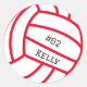 Autocollant rouge volleyball avec nom et numéro personnalisation.