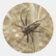 Cette belle feuille d'autocollants ronds présente une photo détaillée d'une araignée de jardin rampant une lame de semis d'herbe. Le beau détail de cette photo donne un sens de l'échelle.
