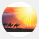 Cette conception est faite de trois sages. Les hommes sages traversent le désert en silhouette au soleil brillant. Ce dessin de trois hommes sages est génial pour ce Stickers