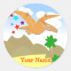 Stickers Dinosaur Pteranodon Nom. Un joli et souriant dino couleur orange Pteranodon dans un paysage de pierre préhistorique lumineux avec des palmiers, des montagnes et des étoiles volcans dans le ciel bleu avec quelques nuages blancs collant rond avec Votre Nom. Remplissez votre nom pour personnaliser votre autocollant spécial de dino unique avec votre nom! Cet autocollant dinos est entièrement personnalisable, ajoutez votre texte et votre image. Super retour à l'école caricature de dinosaures autocollants ou cadeaux d'anniversaire autocollants pour le petit et grand fan de dinosaure!