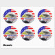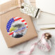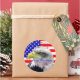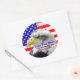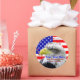 De grands autocollants qui sont audacieux et lumineux et dans des couleurs vives. Ajoutez facilement n'importe quel texte personnalisé à ces étoiles de tournage illustrées rouges, blanches et bleues et à ces autocollants de design rayés avec une superbe photo d'un aigle américain chauve au milieu, avec un arrière-plan du drapeau américain. Il s'agit d'autocollants publicitaires et de vente au détail, ou encore de nouveaux cadeaux d'électeur d'aigle ou de cadeaux d'électeur le jour de l'élection. Obtenez beaucoup de ceux-ci pour avoir en main pour le jour commémoratif, la fête des anciens combattants, le 4 juillet, la fête du travail et le jour de l'élection. Montré est l'autocollant rond populaire. Ajoutez du texte ou supprimez simplement l'exemple de texte si nécessaire. Faites de belles enveloppes et des faveurs spéciales aussi!