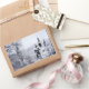 Une photo montrant juste un aperçu du lac de montagne à travers des sapins enneigés. Cette image de paysage est numériquement manipulée pour ressembler à une aquarelle. Le lac Nojiri est un lac glaciaire dans les Alpes japonaises. C'est une station populaire d'été et d'hiver, et les Jeux Olympiques d'hiver de 1998 ont eu lieu à Nagano et sur les pistes de ski environnantes. Bien que le climat soit tempéré et que le lac gèle rarement, les montagnes sont généralement recouvertes de plusieurs mètres de neige en hiver.