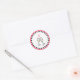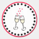 Des autocollants ronds, mariages, anniversaires ou fiançailles amusants, avec des lunettes de champagne de dessin animé se torréfiant, avec de petits coeurs flottant. L'arrière - plan blanc a des pois noirs autour du bord et un cadre rose foncé. Customisez d'ajouter le texte que vous voulez. Super avec nos invitations de fiançailles correspondantes.