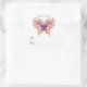 Cet autocollant de marque cadeau est montré sur un arrière - plan blanc, avec un joli graphisme d'un papillon dans les violets et les oranges souhaite à votre destinataire un joyeux anniversaire. Texte dans Lavender avec To : & From : pour que vous écriviez des noms. Grande taille affichée. Customisez cet objet ou achetez tel quel. Impression d'image stock