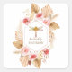 Joli et élégant, style boho, autocollants de produits botaniques floraux étiquettes qui disent : "Fabriqué à la main par", avec le nom du fabricant. élégant produit étiquettes, avec un cadre doré avec des fleurs de crème rose et feuilles de palmetto.