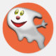 Autocollant rond avec une empreinte fantôme d'halloween. Customisez cet objet ou achetez tel quel. com.