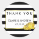 Customisez votre fête de fiançailles ou vos faveurs de mariage avec ces autocollants avec des rayures noires et blanches audacieuses avec une fleur de pivoine brillante à effet d'or. Coordonnée avec nos invitations Black Stripe & Gold Peony, fournitures de bureau, produits papier et accessoires.