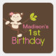 Nos adorables stickers anniversaires de enfants de singe petite fille sont la touche finale parfaite pour vos invitations de fête d'anniversaire de singe! Notre petit autocollant sucré de singe présente un mignon petit singe qui balance sur une branche d'arbre et est placé sur un arrière - plan brun élégant. Visitez notre magasin pour les invitations assorties, les cartes de remerciement, les autocollants d'anniversaire, les autocollants de remerciement et les timbres-poste. © Petit Tatti