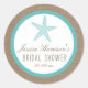 Ces étoiles de mer turquoise sur les stickers de douche nuptiale de plage de burlap feront l'accessoire parfait pour toute future mariée ! Le design est composé d'un bel arrière - plan à effet de burlap rustique avec une jolie étoile de mer turquoise. Ces autocollants peuvent être personnalisés pour votre occasion spéciale et rendraient l'accessoire parfait pour n'importe quel mariage de plage, douche nuptiale, fête de fiançailles, fête d'anniversaire et bien plus encore. *Veuillez noter que Zazzle ne vend que des autocollants imprimés, de sorte que cet article n'a pas de matériel de burlap réel.