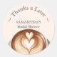 Stickers Fête des mariées "Thanks a Latte" - Personnalisé & Charming Ajoutez une touche simple mais élégante à vos faveurs de douche nuptiale avec ces étiquettes de douche nuptiale personnalisés! Dotés d'un jeu de chandail "Thanks a Latte", ces stickers de douche nuptiale sont la façon parfaite de montrer de l'appréciation tout en complétant un amour est thème brassant. Conçus avec une illustration de tasse de café et un détail en mousse en forme de coeur, ces autocollants font des ajouts élégants aux idées de mariage espresso. Personnalisez-les facilement avec votre nom et les détails de l'événement à l'aide de nos champs de modèle personnalisables. Parfaits pour sceller des sacs de faveur, des boîtes-cadeaux, ou pour traiter l'emballage, ces douches nuptiales personnalisées apportent chaleur et charme à toute célébration. Vous recherchez des articles correspondants ? Parcourez la collection complète de Fêtes des mariées de café Love Is Brewing ici : www.zazzle.com/collections/love_is_brewing_coffee_bridal_shower_theme-119790365046617117 Si vous ne voyez pas ce que vous cherchez, envoyez-moi un message. Je suis toujours heureux d'aider ! Aquarelle de Victoria Grigaliunas. Vous cherchez plus d'idées sur le thème de la douche nuptiale café? Dites "L'amour brasse la Fête des mariées Do Tell A Belle" pour nous trouver en ligne.