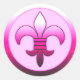 Autocollants ronds dans votre choix de deux tailles, avec une grande fleur de lis design. Celui-ci est rose, et vous pouvez customiser la couleur arrière - plan à tout ce que vous voulez. La fleur de lis est un lys stylisé (en français, fleur signifie fleur, lis, lis) ou l'iris est utilisé comme un design ou un symbole décoratif. C'est un symbole de tout ce qui touche la France, le Québec, la Nouvelle-Orléans et bien d'autres pays.