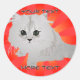 Un adorable chaton blanc moelleux sur un arrière - plan rouge énergique. Art original © Lydia "PrairieGhost" Jacobs 2010