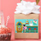 Servez quelque chose de spécial avec ces Stickers Fontaine Retro Soda. L'art minimaliste, dessin animé, présente l'intérieur du lieu le plus frais de la ville. C'est une fontaine de soda des années 50, dans toute sa gloire kitsch ! Sur fond de mur d'aqua, on peut voir des affiches annonçant les spécialités de la maison. Une affiche montre un hamburger et une bouteille de pop pour le prix d'affaire de 15 cents. L'autre affiche montre deux boules de crème glacée dans un cône de sucre pour seulement 5 centimes. Avec des prix comme ceux-ci, difficile de regarder sa taille ! Un réducteur de soda très compétent est d'habiller le comptoir turquoise avec des accents jaunes. Le jeune homme qui a une forte éthique du travail tient un cône de crème glacée avec une seule boule de crème glacée jaune citron—bien que, pour être honnête, il pourrait être de l'ananas ! L'homme nettoyé porte une chemise blanche immaculée avec une cravate noire et arc et un casquette blanc aux accents rouges. De l'autre côté du comptoir, on aperçoit trois tabourets de bar rouge et chrome. Perché sur l'un des tabourets est une adolescente blonde dont la bouche arrose sûrement. On ne sait pas si sa bouche arrose le cône glacé qui se dirige vers elle ou le jeune homme industrieux qui le sert. Elle porte une jupe de caniche rose et un toit noir ajusté à la forme. Ses serrures jaunes sont retirées dans une queue de cheval classique. A côté de cette jolie clientèle se trouve un juke-box coloré et classique, qui est composé de brun, de grains de bois, de boiseries et de néons colorés. Mieux encore, il est sûr de présenter tous les plus grands succès rock et roll de l'époque ! Le sol de ce glacier moderne du milieu du siècle est un aqua et turquoise motif en damier qui crie juste pour que quelqu'un puisse essayer toutes les dernières danses.