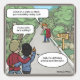 Ces autocollants humoristiques comportent un couple de randonnées avec un ami, qui est très heureux de leur montrer quelque chose de vraiment cool en avant. Les randonneurs sont ramenés par son enthousiasme au point de se demander s’il bluffe. Puis ils réalisent que tous les signes en effet soulignent qu'il bluffe...et c'est logique pourquoi !