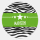 Sassy Star Zebra Stickers tendance et moderne avec un arrière - plan d'impression zébrée noir et blanc chic et une bordure verte chartreuse ornée d'un motif étoilé amusant. Ce design girly peut être customisé avec le texte personnalisé de votre choix. Cliquez sur "Customiser" pour trouver d'autres options de personnalisation.