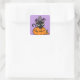 Petit autocollant carré montré dans un chatte noir et imprimé chauve-souris d'Halloween. Customiser cet objet ou acheter tel quel. Image du stock freepik.com