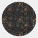 Petit autocollant rond montré dans une effrayante impression de toiles d'araignée d'Halloween. Customiser cet objet ou acheter tel quel. Image du stock freepik.com