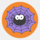 Autocollant de forme ronde avec une empreinte d'araignée Halloween. Customisez cet objet ou achetez tel quel.