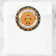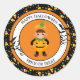 Cet autocollant rond de grande taille est montré dans une jolie imprimé citrouille d'Halloween festive. Customisez cet objet ou achetez tel quel. Image stock all-free-download.com