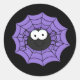 Autocollant de forme ronde en noir avec imprimé d'araignée d'Halloween. Customisez cet objet ou achetez tel quel.