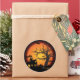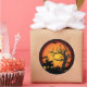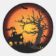 Autocollant de forme arrondie affiché dans une impression maison hantée Halloween. Customisez cet objet ou achetez tel quel.