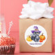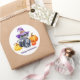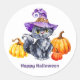 Grand autocollant rond montré dans une jolie impression de chat noir Halloween. Customiser cet objet ou acheter tel quel. Image du stock freepik.com
