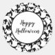 Un petit autocollant rond est affiché dans un imprimé de fantômes éffrayants d'Halloween. Customisez cet objet ou achetez tel quel.