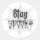 Un petit autocollant rond est affiché dans une impression éffrayante de séjour Halloween. Customisez cet objet ou achetez tel quel.
