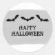 Stickers Halloween chauves-chauves-souris Aquarelle tendance et ludique avec un gris clair aquarelle look arrière - plan et trois petites chauves-souris fantaisistes. Ces autocollants simples et modernes peuvent être facilement customisés avec votre propre salutation Halloween. Pour plus d'options de personnalisation, cliquez sur Customiser.