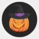 Autocollant rond avec une impression d'art Citrouille d'Halloween effrayante. Customisez cet objet ou achetez tel quel. Image stock