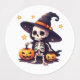 Ajoutez une touche éffrayante-mignonne à vos métiers d'Halloween avec ces stickers de sorcière squelette ! Dotés d'un squelette kawaii portant un casquette sorcier et tenant un citrouille, ces autocollants sont parfaits pour les planificateurs, le scrapbooking, les faveurs de fête et les jeux d'Halloween pour enfants. Imprimé sur papier adhésif durable, disponible en plusieurs tailles et finitions.