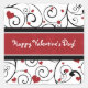Autocollants personnalisables Heureuses Saintes-Valentin en motif fun et moderne rouge, noir et blanc coeurs et tourbillons.