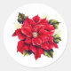 L'autocollant de jour férié est présenté avec un imprimé fleur de poinsettia rouge festif. Customiser ou acheter tel quel.