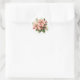 Autocollant de jour férié montré avec un imprimé fleur de poinsettia rose festive. Customiser ou acheter tel quel. Image sous licence