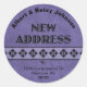 Purple nouvel autocollant d'adresse avec votre nom courbé dans un arc en haut et votre adresse en bas. Style amusant et facile à faire passer votre message.