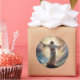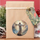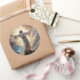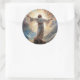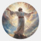 L'autocollant rond est montré avec un imprimé d'art de Jésus dans sa gloire. Un autocollant de grande taille est affiché. Customisez cet objet ou achetez tel quel. Image sous licence